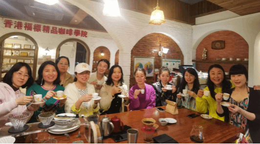 的女教工们暂时放下繁忙的工作,共赴了一场鲜花、咖啡与美食之约。