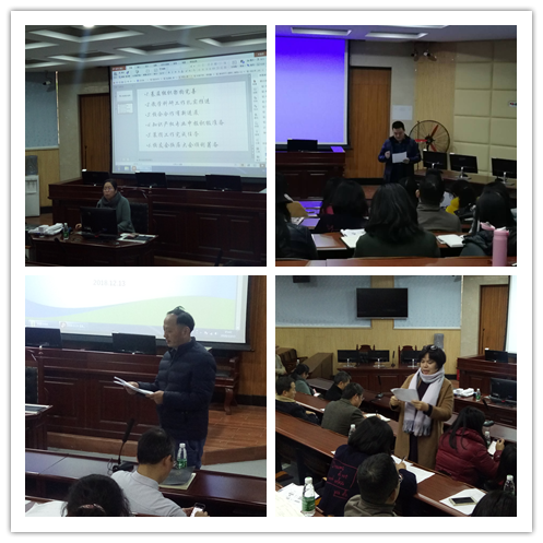 在此次教职工大会上,按照之前拟定的议程,由学院院长郑玉敏教授作学院2018年的工作汇报。郑院长从学院基层组织框架的完善、教学科研工作的推进等方面对学院工作进行了汇报。学院今年取得了较大成绩,老师们也是频频点头。接着是学院办公室主任蒋丽静老师作单位财务情况汇报。蒋老师从学院办公的每笔经费的开支范围、花费情况等方面将经费情况掰开了向老师们一一介绍,使老师们对学校经费的使用情况有了一个较为清晰的了解。接着由分工会主席汪辉勇教授作分工会2018年工作汇报。汪教授从分工会活动的开展情况讲起,从整年的活动情况向老师们作了汇报,鼓励老师们积极参与学院工会活动。最后由分工会委员蔡贵峰作分工会年度财务情况汇报。蔡老师将分工会经费的来源、组成及每一笔支出的来龙去脉一一向老师介绍,使分工会经费情况公开、透明。