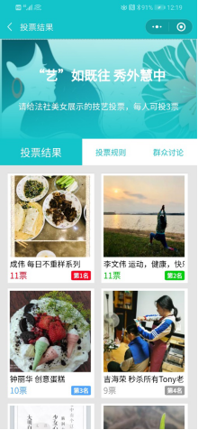 的女教工们在线分享了多种才艺作品。从分享的照片和视频中,我们看到了多位巧手老师的精湛厨艺,还有健身达人、听书达人、花艺达人、摄影达人的作品。随后,我们发起了线上投票活动,选出了最受大家欢迎的作品。投票结果出炉后,大家反应热烈,线上互动积极。此次活动展示了我们法社女教工的巾帼风采,让大家领略到这些知性女性的多才多艺的一面。
