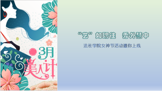 分工会都会组织女教工们来一场户外踏青之旅。今年,恰逢新冠肺炎疫情期间,大家都在家中共同抗“疫”。开学初始,大家也进入了忙碌的教学行政工作状态。为了让大家在工作之余,仍然能过上一个开心的妇女节,也让久未见面的法社姐妹能够有机会畅聊一下,禁漫