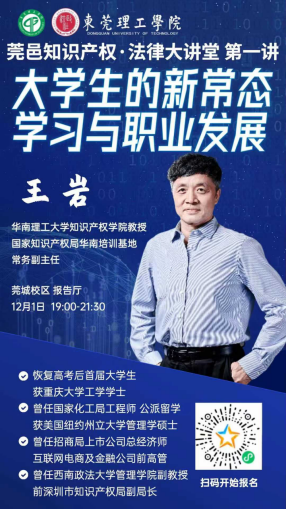 宗旨:立足东莞,辐望湾区,以知识产权法律讲座为中心,定期邀请国内外知识产权知名人士,就知识产权与产业发展的基础性和前沿性问题进行交流分享,推动知识产权理论研究与产业发展协同创新。
