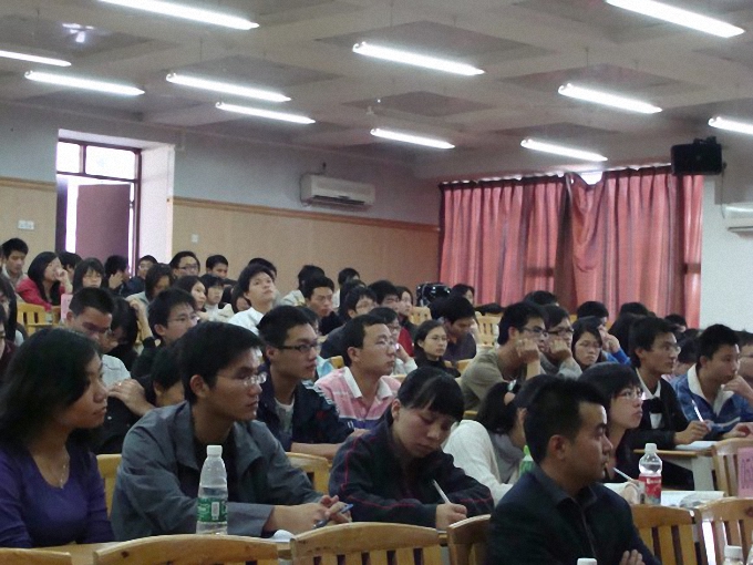 毕业生大致的就业方向,鼓励同学们自主创业。紧接着,他归纳了当今毕业生就业的几个途径,指出就业主要是要靠自己的实力,同时也需要学习、运用一些技巧。最后,潘荣新老师对09届毕业生提出了自己的期望,他希望同学们要根据自己的实际情况积极寻找适合自己的工作,既要有长远的目光,又要为可能遭遇的困难做好充足的准备。随后,政法学院辅导员吴进老师也对09届毕业生提出了自己的建议,他希望同学们要把握好自己的定位,并要勇于尝试,抓住各种各样的就业机会。