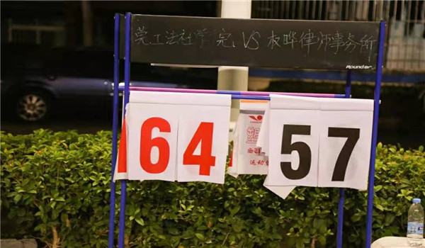 教师代表队以总比分64:57战胜了权晔律师事务所篮球团队,获得了本场友谊赛的胜利。