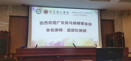 2020年11月25号上午,广东良马律师事务所的李良主任律师以及温丽红律师,以中美企业竞争中的知识产权保护为题,在莞城校区的模拟法庭为禁漫