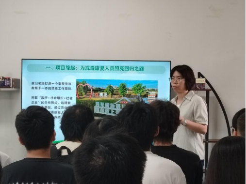 11日上午,师生们探访了东莞市横沥镇隔坑社区下设的乐善心田紫苏基地。参观过程中,通过工作人员的介绍,同学们了解到横沥镇“乐善心田”戒毒康复人员帮扶基地通过“政府+社会组织+社会企业”的合作形式,以紫苏种植加工为主要产业,辅以开展农耕体验、禁毒宣传教育工作,为禁毒康复人员提供多层次的帮扶救助,促进戒毒康复人员的社会融入。同时,在隔坑社区冯宛宁副总干事的详细介绍下,同学们了解了社企项目发展背景、服务群体及显著成效,体会到社工们为推动戒毒康复人员重返社会所做出的努力。基地通过“我在横沥有块地”这一创意活动,吸引了社会各界的关注与参与,让在场的同学们深受震撼。随后,师生们品尝了来自基地种植的紫苏茶,亲身体验采摘紫苏以及制作紫苏香囊,在体验的过程中感受社企项目所蕴含的独特魅力。