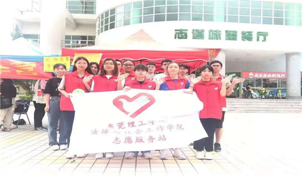 莞城校区一饭门前开展“无悔青春,勇进军营”之大学生入伍宣传活动。