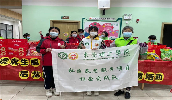 2022年1月18号下午,大创团队成员梁星琴同学作为志愿者从东城赶往石龙红棉长者服务中心跟随红棉社工陈淑娟姐姐一起参与了由石龙镇公共服务办指导,石龙镇综合养老服务中心、石龙镇红棉长者服务中心、石龙镇居家养老工作办公室共同开展的“福气满满,虎虎生威——石龙居家养老长者新春探访活动”,一同为石龙居家养老长者送上节日的大礼盒和新春的祝福。探访中,梁星琴同学主动与长者话家常,深入了解他们的生活状况。除此之外,与社工姐姐们一起为长者们准备迎春窗花和对联。