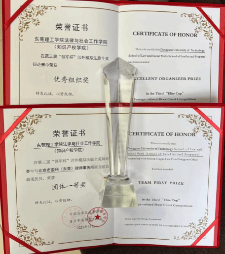 学子与北京市盈科(东莞)律师事务所盈德团队合作组队,第一次参加由中国法学交流基金会和重庆市高等教育学会主办、西南政法大学国际法学院承办第三届“领军杯”涉外模拟法庭全英辩论赛,荣获“领军杯”涉外模拟法庭全英辩论赛团体一等奖。禁漫