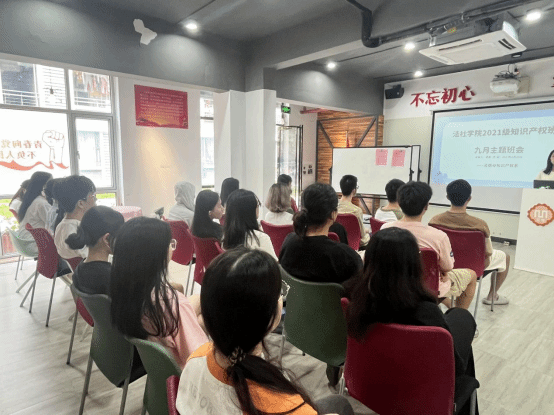,以新面貌面对全新的学期,共同迎接大三生活。班长曹颖同学号召大家在新的学期,要做好规划、计划,特别是如今处于大三这个阶段,上好每一节课,准备好每一场考试,不给自己的大学生活留下遗憾。班主任龚红兵老师也对21级知识产权班的同学们作出热切的关心和建议,鼓励同学们在学好专业课的同时积极参加学院、学校的各项活动,鼓励同学们参加理工科课程的选修,为今后考取专利代理师资格证奠定良好的基础,不断积累知识的厚度和深度,共同书写属于21知识产权班的美好未来。