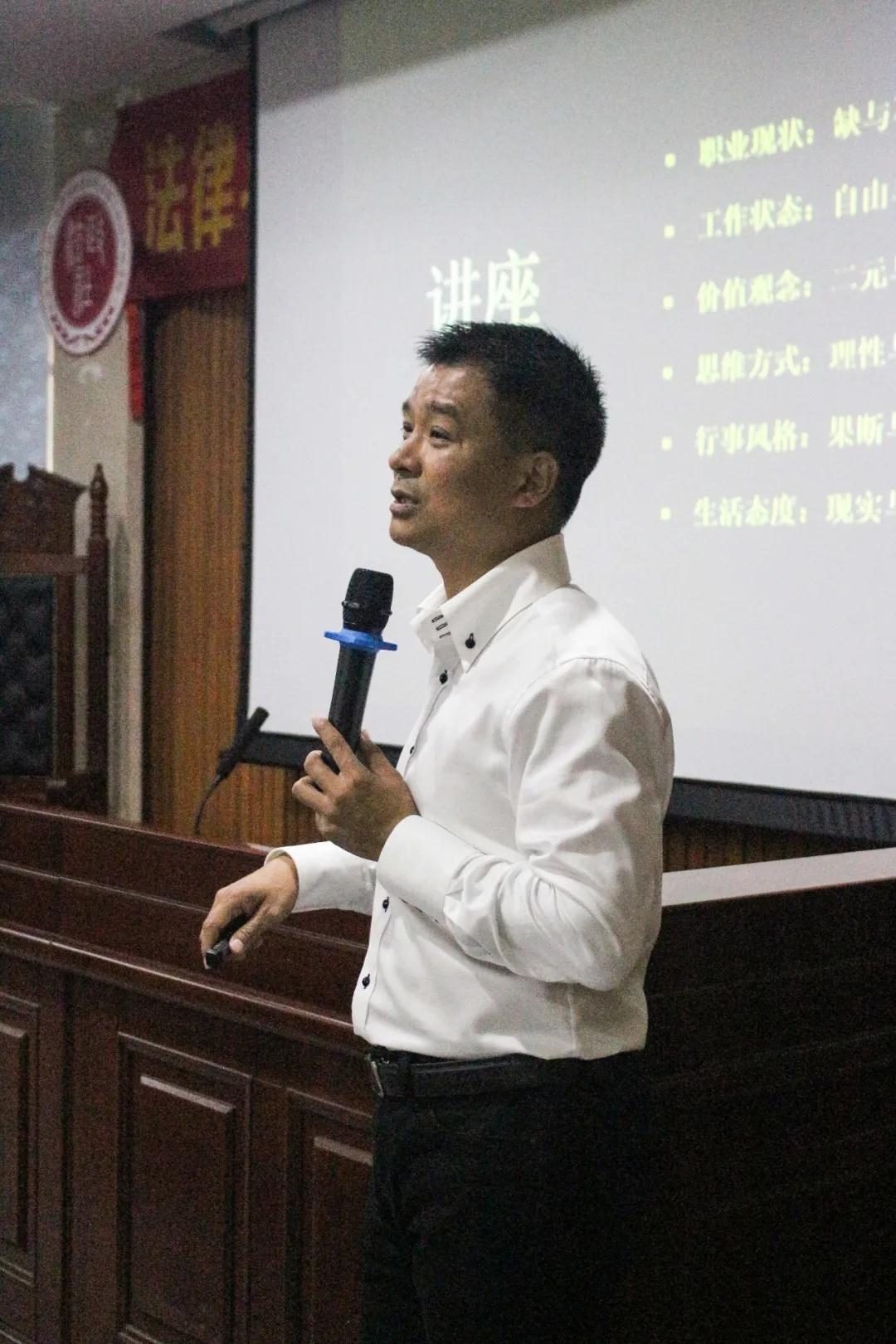 11月20日下午,法律与社会工作学院(知识产权学院)在莞城校区模拟法庭举行“法路历程”第八期系列讲座,邀请了汪宏杰律师对民法典时代的法律人工作和生活进行讲解,学院老师李文伟、熊毅军等出席。