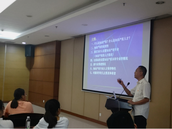 龚老师对各位同学的到来表示欢迎和祝贺,他向同学们阐述了知识产权专业的人才培养方向,在未来的学习中应该如何做,应该用一颗认真的心来看待这个专业。