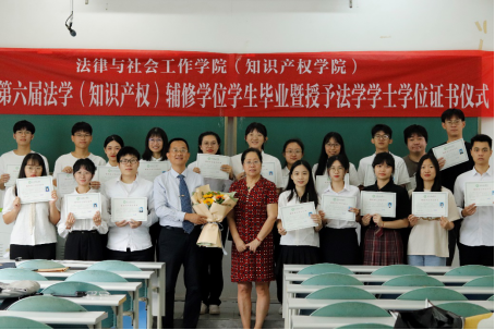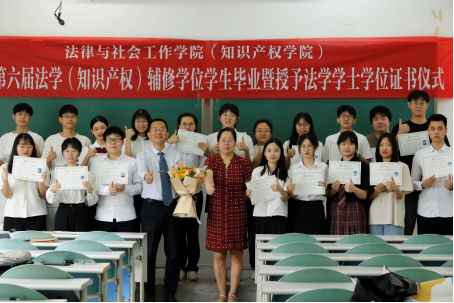 在松山湖校区6B203课室举行了2022年第六届法学(知识产权)辅修学位学生毕业暨授予法学学士学位证书仪式。本次仪式由知识产权系主任龚红兵副教授主持。