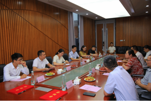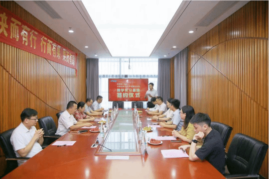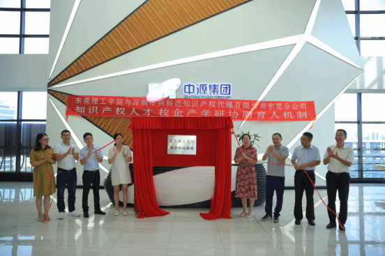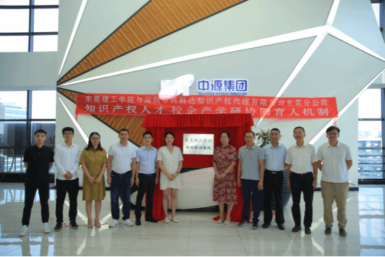 知识产权系胡庆乐特聘副教授;中源集团董事长冯玉玺,中源集团总经理、深圳兴科达知识产权人有限公司东莞分公司的创始人陈漫言,中源集团合伙人黄柏兴,中源集团总经办主任姚丽春,专利代理部部长胡助维,项目经理杜锡恒,出席了签约仪式。