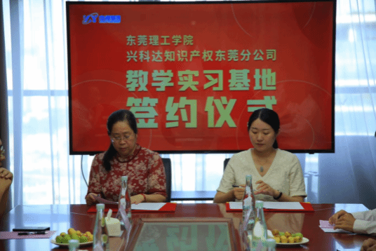 与深圳兴科达知识产权有限公司东莞分公司正式牵手,共同签署知识产权人才培养暨共建教学实习基地合作协议。