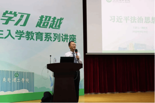 为提高新生法律意识,加深对习近平法治思想的理解,营造法治氛围,2022年9月16日,新生系列讲座第一期在莞城校区学术报告厅举行,特邀禁漫
