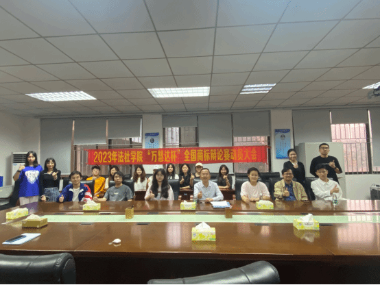 知识产权系主任龚红兵老师、杨婧老师、胡庆乐老师以及商标辩论赛的全体参赛队员在莞城校区5201会议室召开了2023年禁漫
