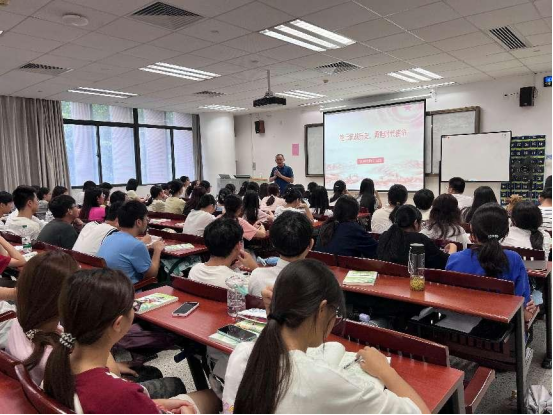 党委书记杜应发以《铭记抗战历史,勇担时代使命》为题,为2025级法学1、2班等同学讲授秋季新学期思政第一课。