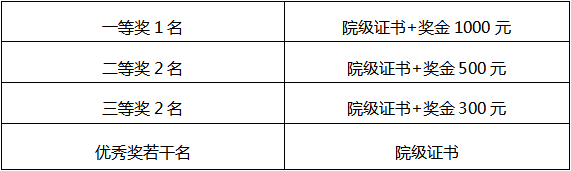 2.对于获得一二三等奖的优秀作品,奖励院级证书与奖励,具体如下: